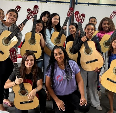 As atividades acontecem no contraturno escolar e unem prática instrumental, canto coral, musicalização, jogos musicais e vivências coletivas, fortalecendo vínculos comunitários e familiares, estimulando a criatividade e valorizando a diversidade.