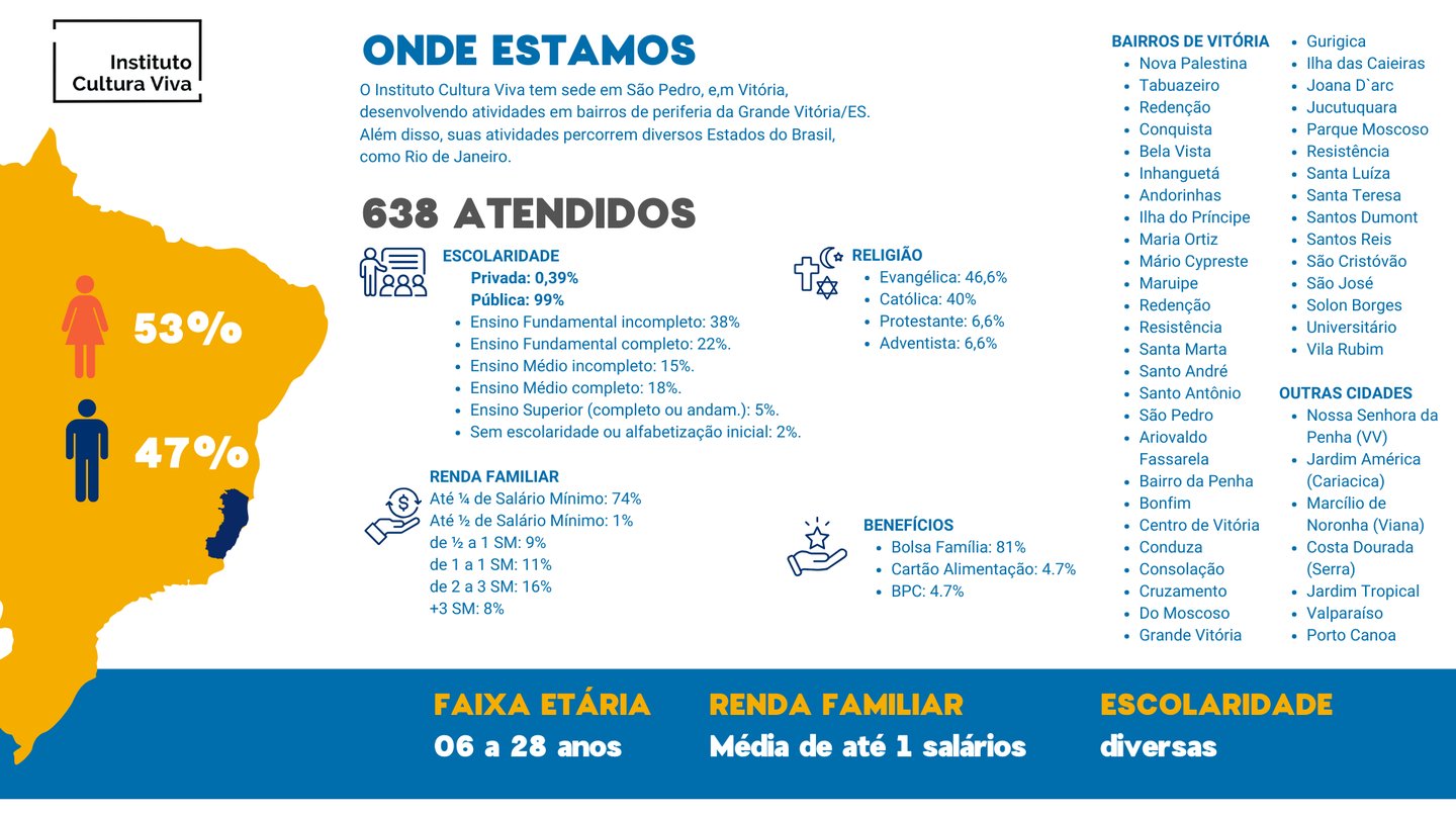 Somos uma instituição social que busca a transformação social através da arte, cultura, música e do esporte.