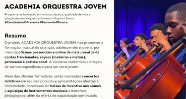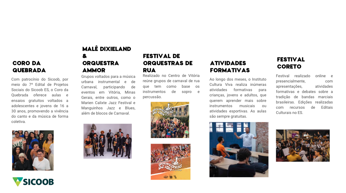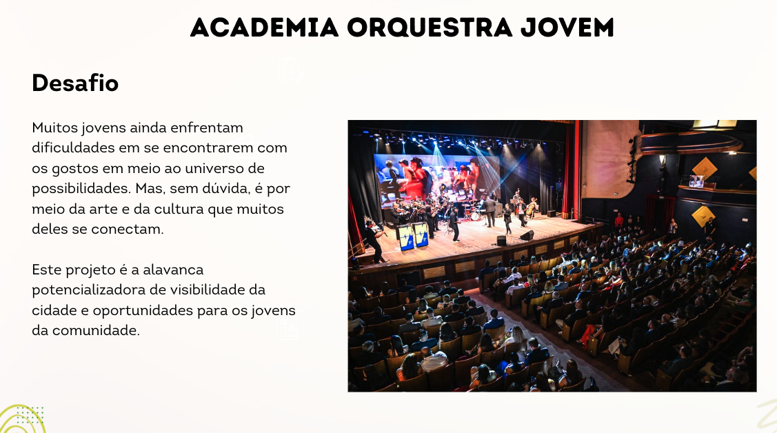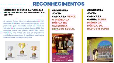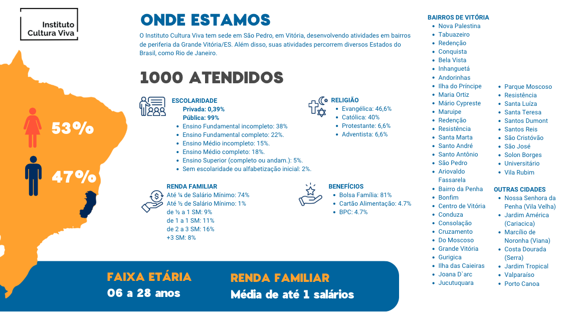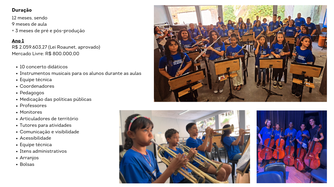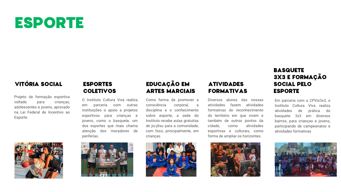 Somos uma instituição social que busca a transformação social através da arte, cultura, música e do esporte.