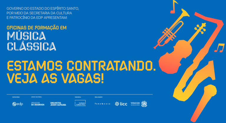 O projeto “Oficinas de Formação em Música Clássica” é uma realização da Tonobooks Produções, com patrocínio da EDP, apoio Cultural da Orquestra da Quebrada e da Orquestra Jovem Capixaba, parceira do Instituto Cultura, por meio da Lei de Incentivo à Cultura Capixaba (LICC), da Secretaria de Cultura do Governo do Estado do Espírito Santo.