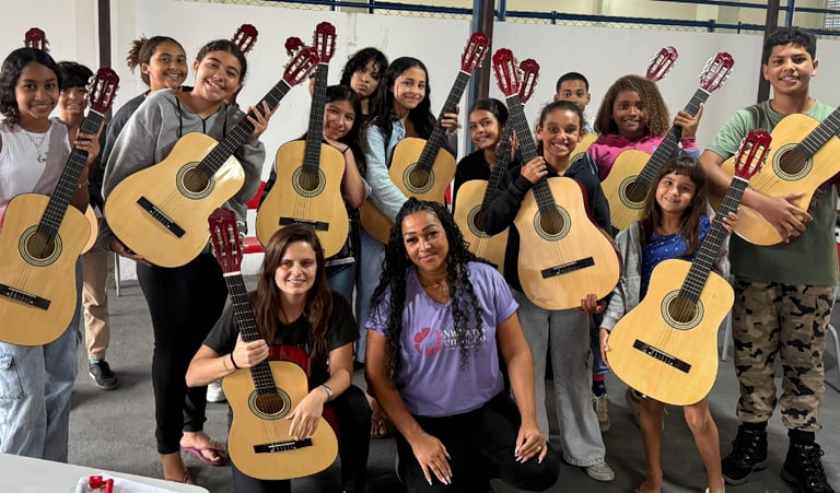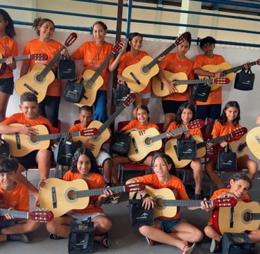 As atividades acontecem no contraturno escolar e unem prática instrumental, canto coral, musicalização, jogos musicais e vivências coletivas, fortalecendo vínculos comunitários e familiares, estimulando a criatividade e valorizando a diversidade.